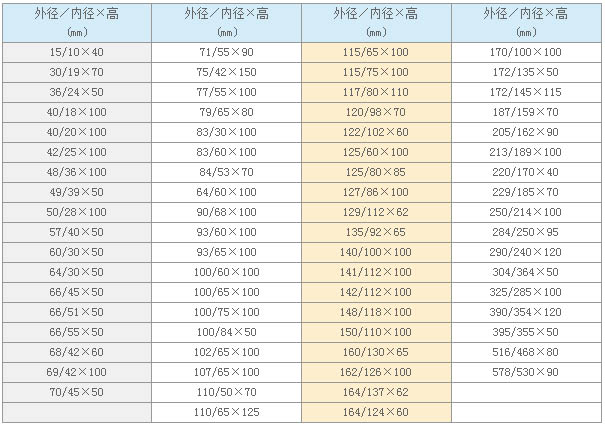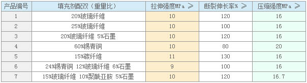 【 特 征 】 填充聚四氟乙烯制品選用填充聚四氟乙烯樹脂經模塑加工制成。懸浮聚合聚四氟乙烯樹脂與各種填充劑混合成填充聚四氟乙烯樹脂。適合與聚四氟乙烯混合的多種填充劑中有玻璃纖維、碳纖維、錫青銅及潤滑劑(如石墨、二硫化鉬)并已廣泛用于規模生產中。填充聚四氟乙烯與純聚四氟乙烯相比具有較高的壓縮強度,耐磨、導熱好、熱膨脹減少的優點。 【 規 格 】